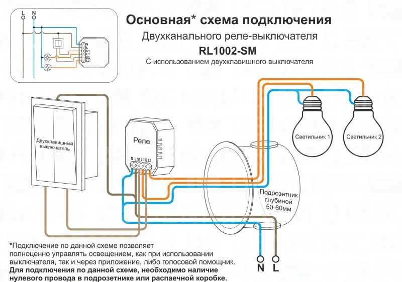 Wi-Fi реле-выключатель двухканальное Denkirs 2x1150Вт/150Вт для LED RL1002-SM купить в Твери по лучшей цене