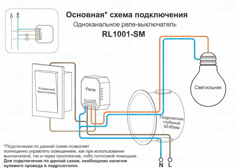 Wi-Fi реле-выключатель одноканальное Denkirs 1x2300Вт/250Вт для LED RL1001-SM купить в Твери по лучшей цене