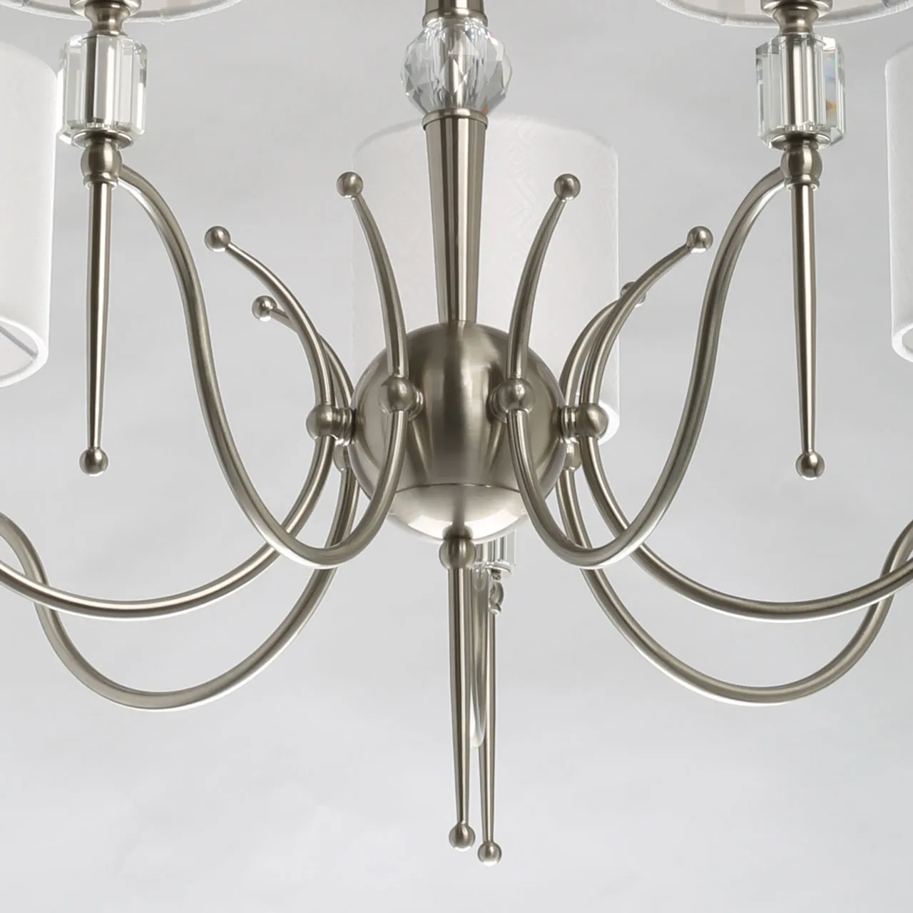 Основание/ металл/ никель Абажур/ текстиль, акрил/ белый, прозрачный Декор/ хрусталь/ прозрачный